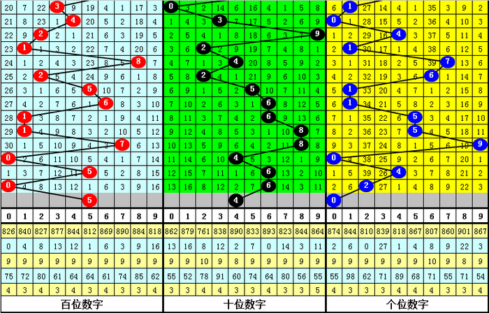 和尾分析:最近10周周四和尾为:4、7、5、1、4、5、5、6、4、3,波动了6个点位,和尾奇偶比为6:4,基本握平,和尾大小比为5:5,基本握平,本期参考和尾9。